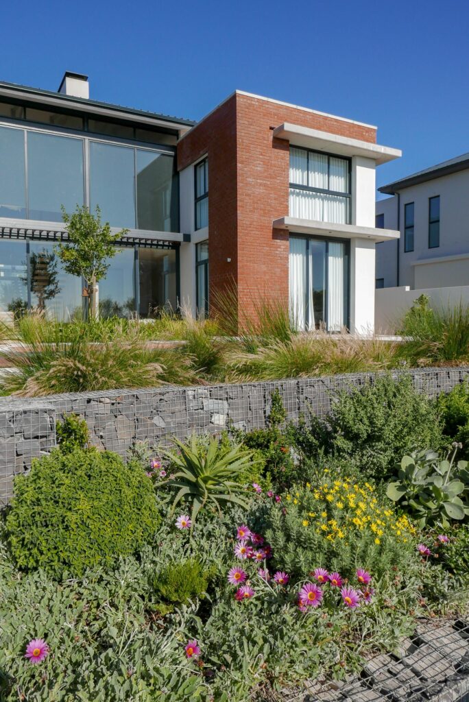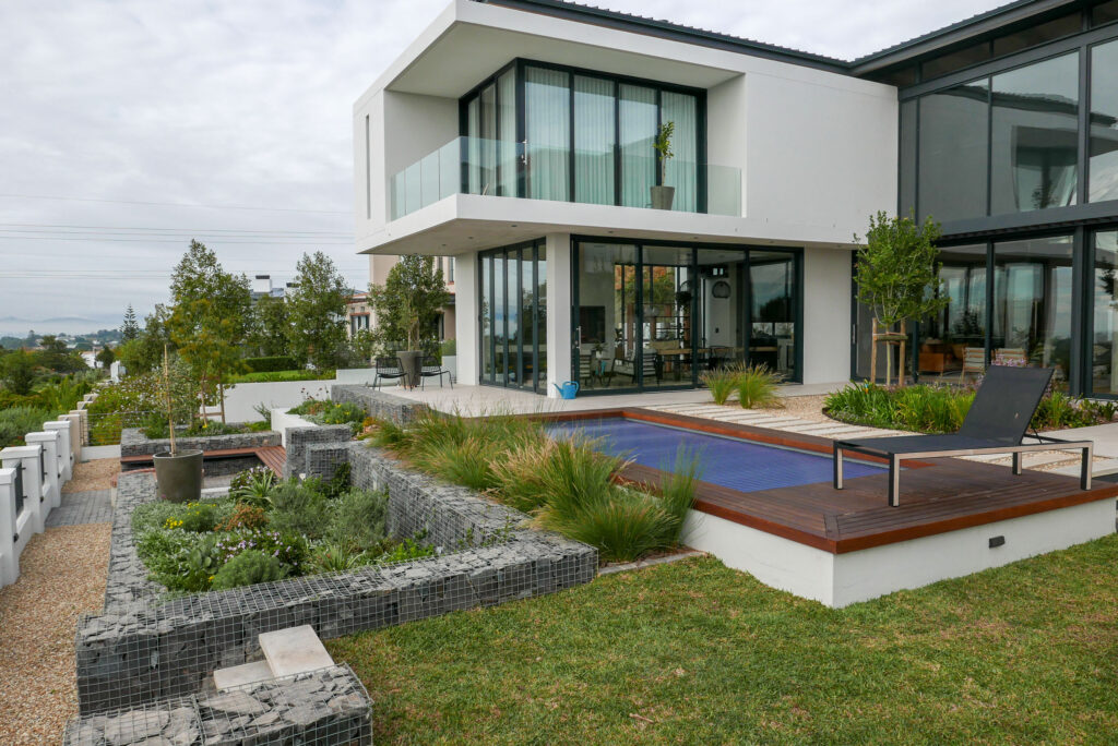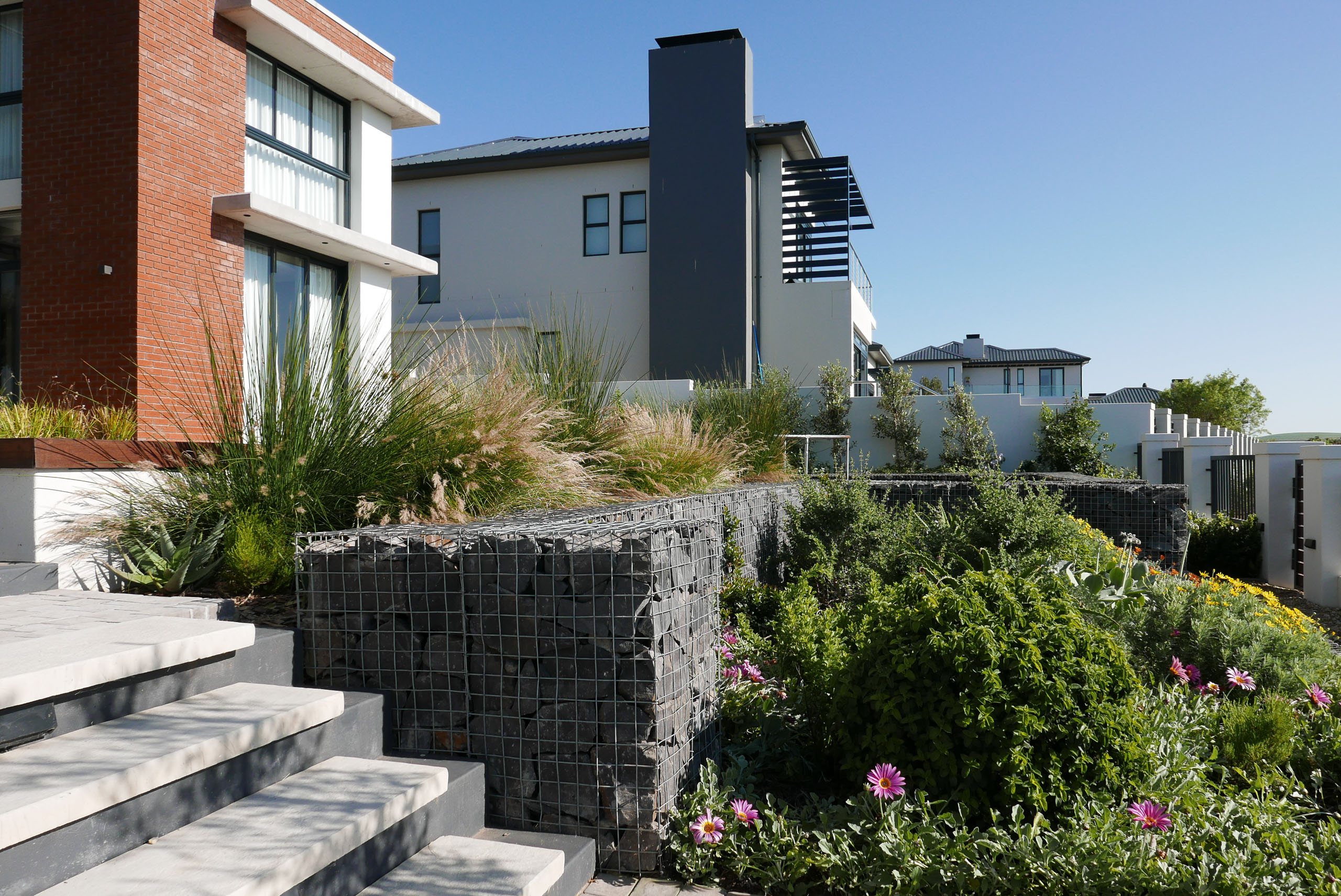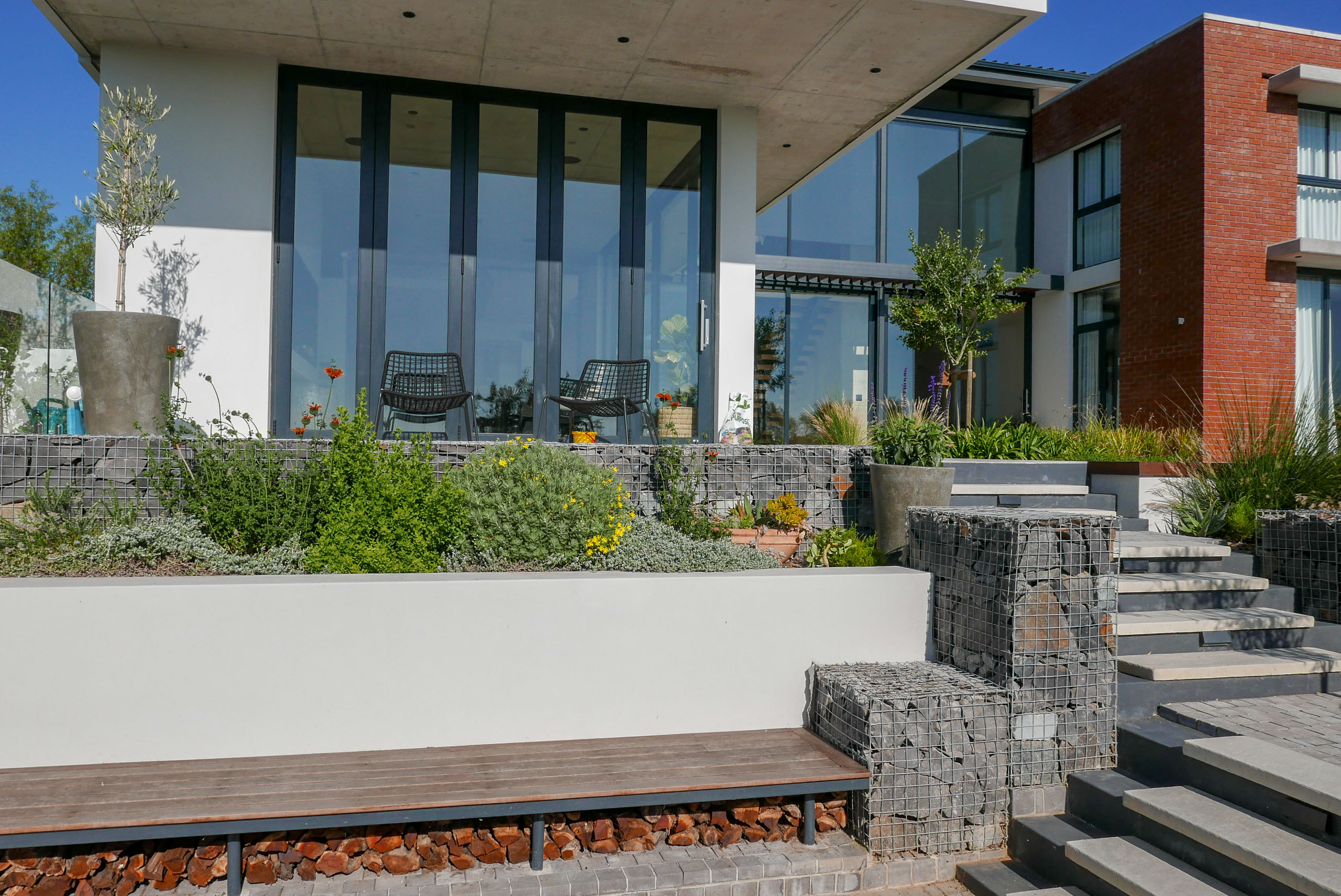 The first garden we designed and planted in Clara Anna Fontein. The layout of the garden was largely dictated by the footprint of the house and the different levels as it is such a sloping site. This was brilliantly dealt with by Roelof Rabe Argitekte who designed the home to have a strong connection with the external spaces by using a lot of glass and large staking doors.